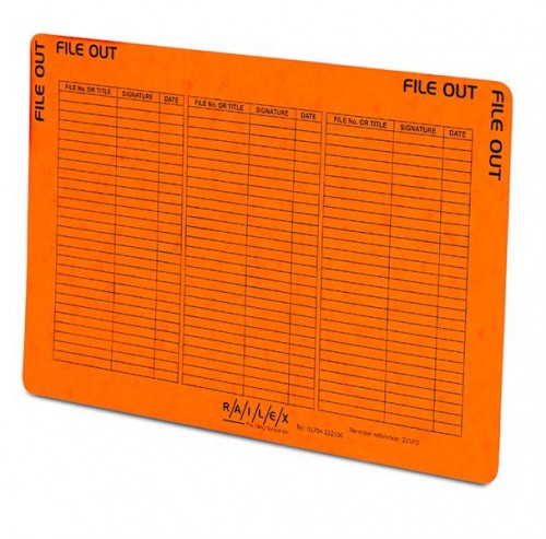 Compatible with the Railex 221 range, our File Out card is vital for good document management and foolproof filing. This is a made to order item please allow approx 3 week lead time for production.
