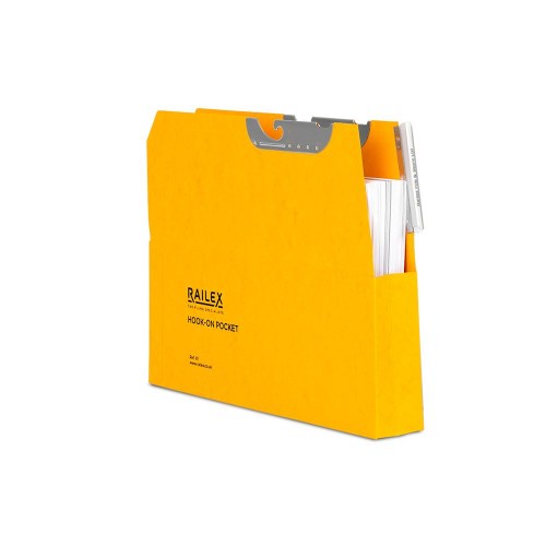The Railex Hook-on system offers a simple and safe method of filing valuable documents. Files hook onto a rail in the cabinet, their position indicated by a title tab. It is ideal for files of mixed thickness. The No.62 hook-on file incorporates the tough Railex Polifile filing mechanism and is ideal for bulky punched papers. This is a made to order item please allow approx 3 week lead time for production.